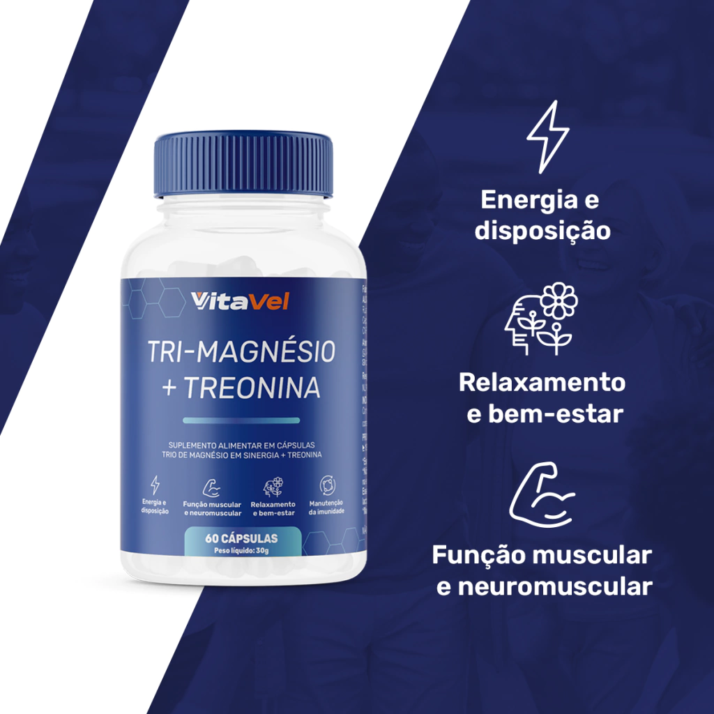 O Tri-Magnésio + Treonina reúne três tipos de magnésio altamente absorvíveis com a L-Treonina, aminoácido funcional que favorece o equilíbrio neurológico e mental.